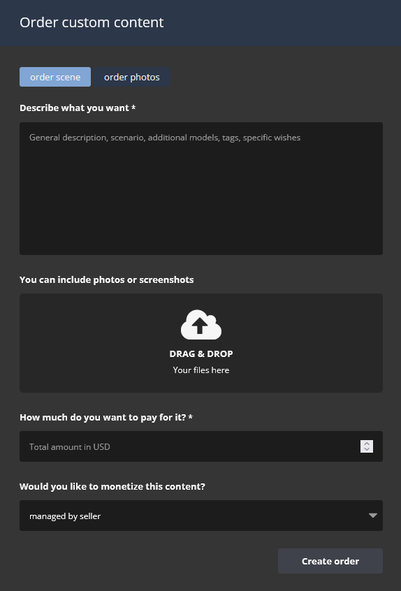 3 - Now will pop up this window where you can describe and order exactly what you want.