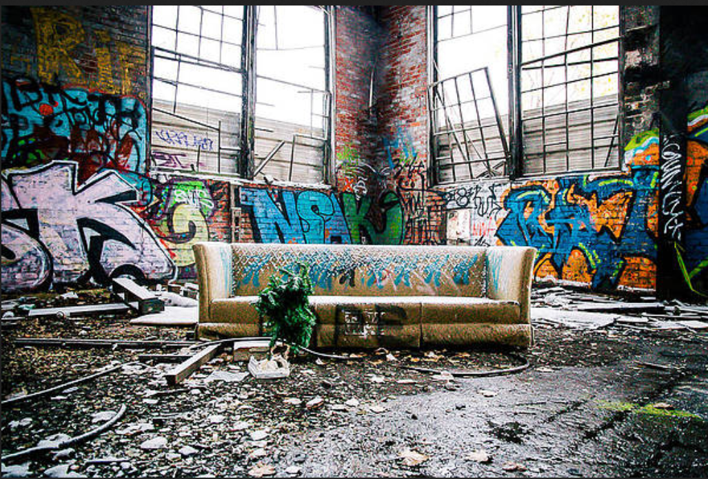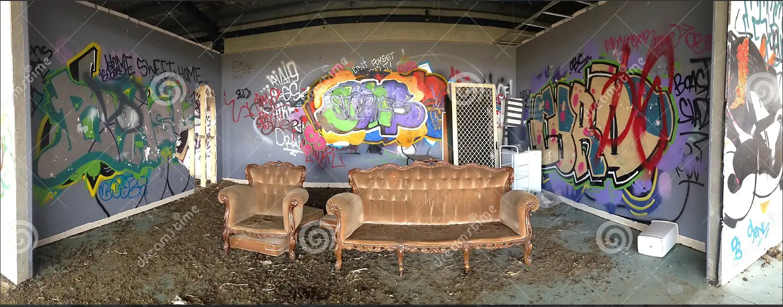 Well, there are some different possibilities but the idea is shoot rough gangbangs with that kind of furniture and location, the damaged furnite gives a picture of how used has been, giving the idea of how many gangbangs did or how many days and nights passed in this place, also the girl fucked doesn't need "comodities", she is fucked as a whore in a trash place, that is the idea of offer a rough content with that kind of site.