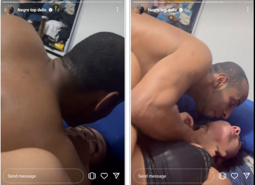 When you post a "highlight" (= saved stories/live) you can give it any title that you want. That title (and not your username/profile/avatar) you'll then see at the top when you watch all the stories of a highlight. Vitoria named that highlight "negro top delic" and posted that on her profile. Those are the screenshots you see here.