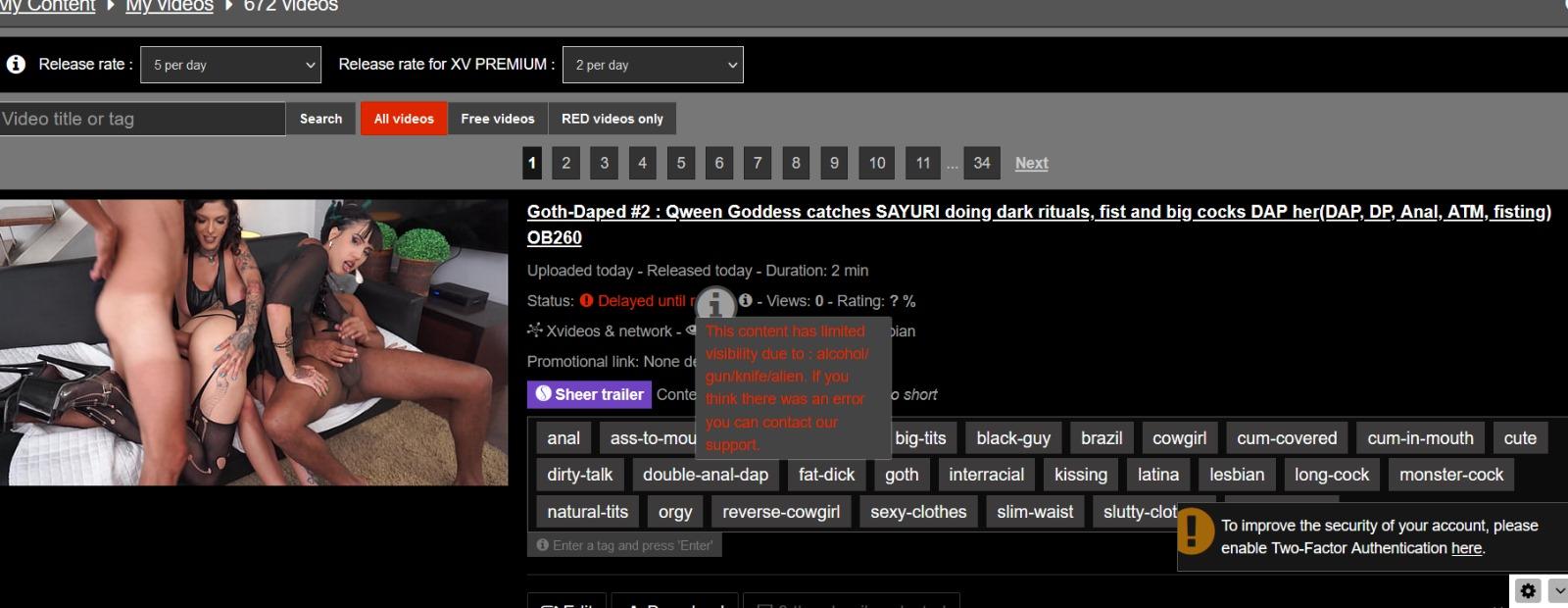 i uploaded 3D porn videos in xvideos of girls drinking 3D wine while fucking, and they got limited visibility because videos with 'alcohol' gets limited visibility, even if is 3D