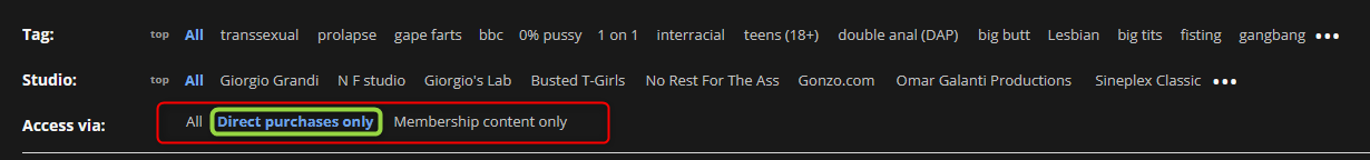 Also, the free scenes which Pornbox decided to add to my Library are also all marked with the tick for "purchased", although I haven't really "purchased" them.