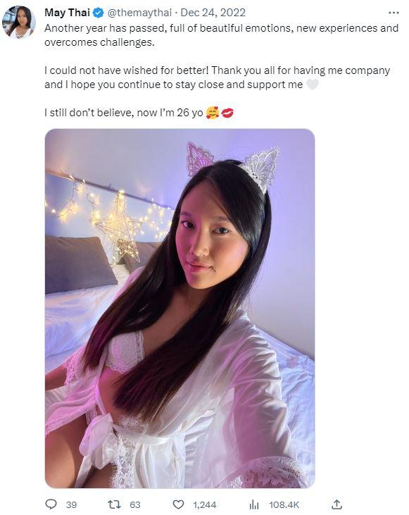 May was born 26 December 1996 (not 1997 as erroneously referenced in many places online)