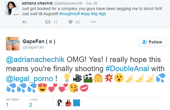 P.S. Adriana liked GapeFans and others questions about LP _ _ _ _but not sure if she is teasing us.