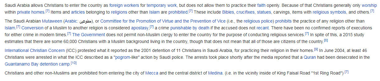 Items and articles belonging to religions other than Islam are prohibited.[7] These include Bibles, crucifixes, statues, carvings, items with religious symbols, and others.