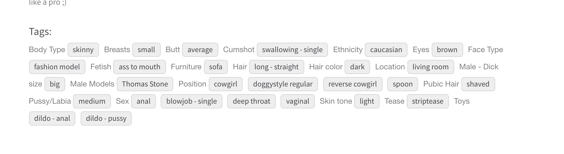 The issue seems to be also that the data entry is maybe being rushed. Yes, it's a boring job but from a customer standpoint - it makes quite a difference. It wouldn't matter as much in a non-ticket based system. You'd be like..."Damn! I spent 30mins downloading this video and its riddled with DP...oh well, I'll just download a different one". In a ticket based system you rely on tags - because your tickets are essentially money. So when the tags lead you somewhere you didn't want to go...you feel mislead. On the other hand, opportunity is being missed here. For example; I love NO PUSSY, STANDING POSITION and ATM (among other things); if there are videos in the archives that have these tags then I'd likely buy them all...then I would run out of tickets, and then I would most likely buy more tickets.