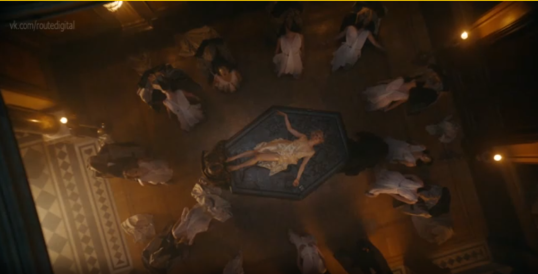 The female narrator tells the story (please excuse the Russian translation, I found the clip only in this version),