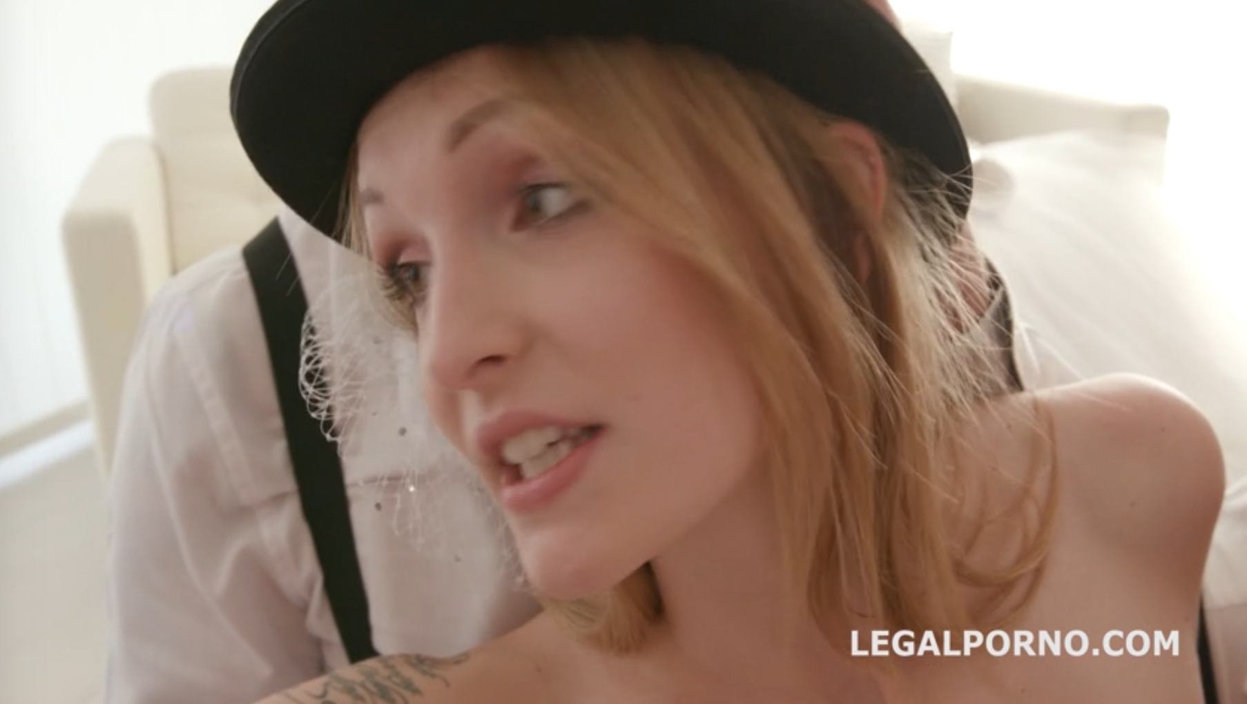 Xander Corvus simply just put the top she was wearing in the scene over her head.