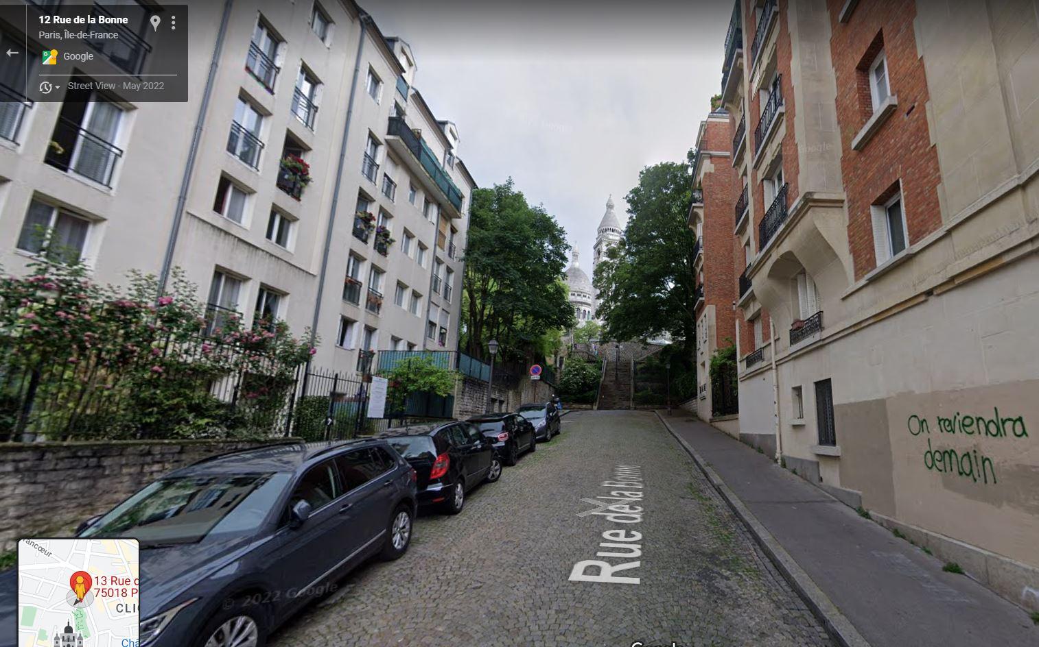 .Ultra-Gape wrote:Just had an explore with Google maps streetview and that definitely is the Sacre Coer in Paris. Here's where I think the original photo was, outside 12 Rue de la Bonne in Paris.