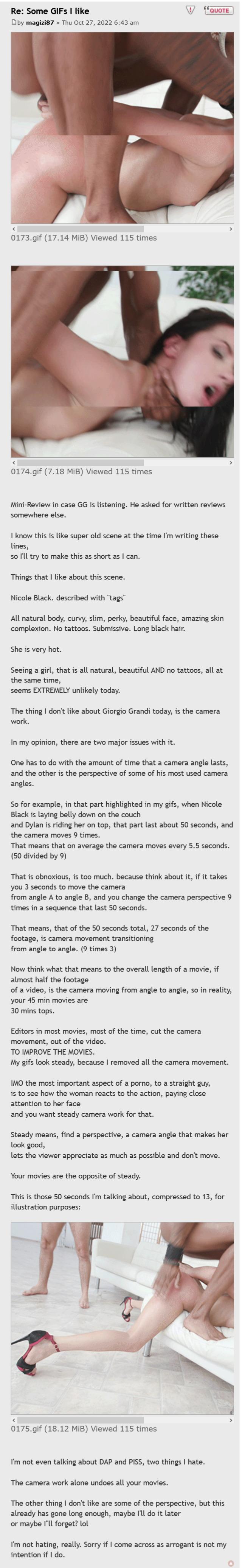 maybe I had watched too many movies, I watch everything not just porn, I like to think that I have knowledge I am always retaining shit, ideas you know, everything I see y want to apply it to, porn, to make it better, is that bad?