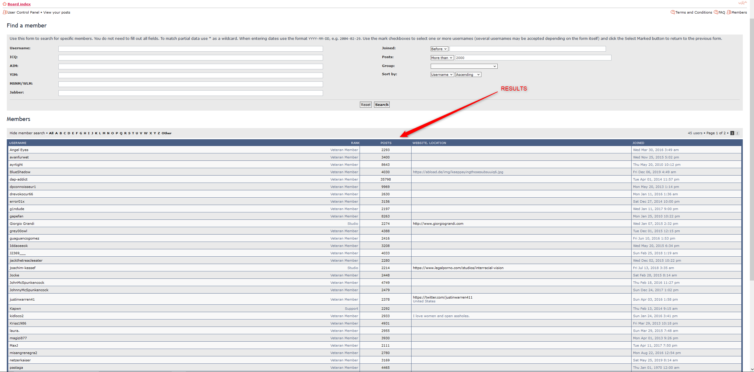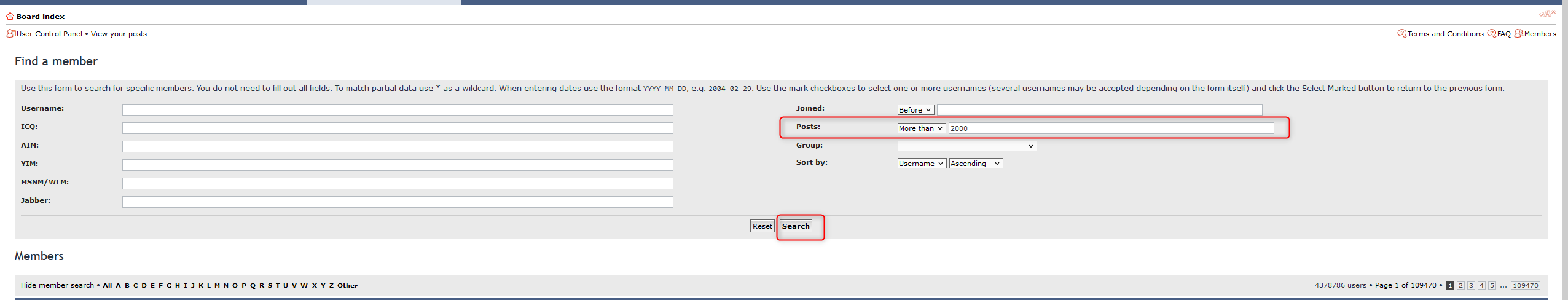 misangrenegra2 wrote:These are the filtesr, you can see there is one filter to the number of post, then press "Search", BE PATIENT, the search is slow...