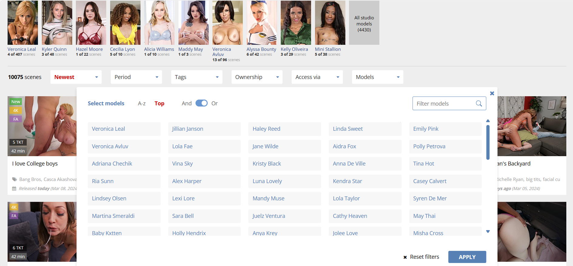 3. When you search by model in a particular studio, not all models are mentioned, many are missing, this needs to be fixed.