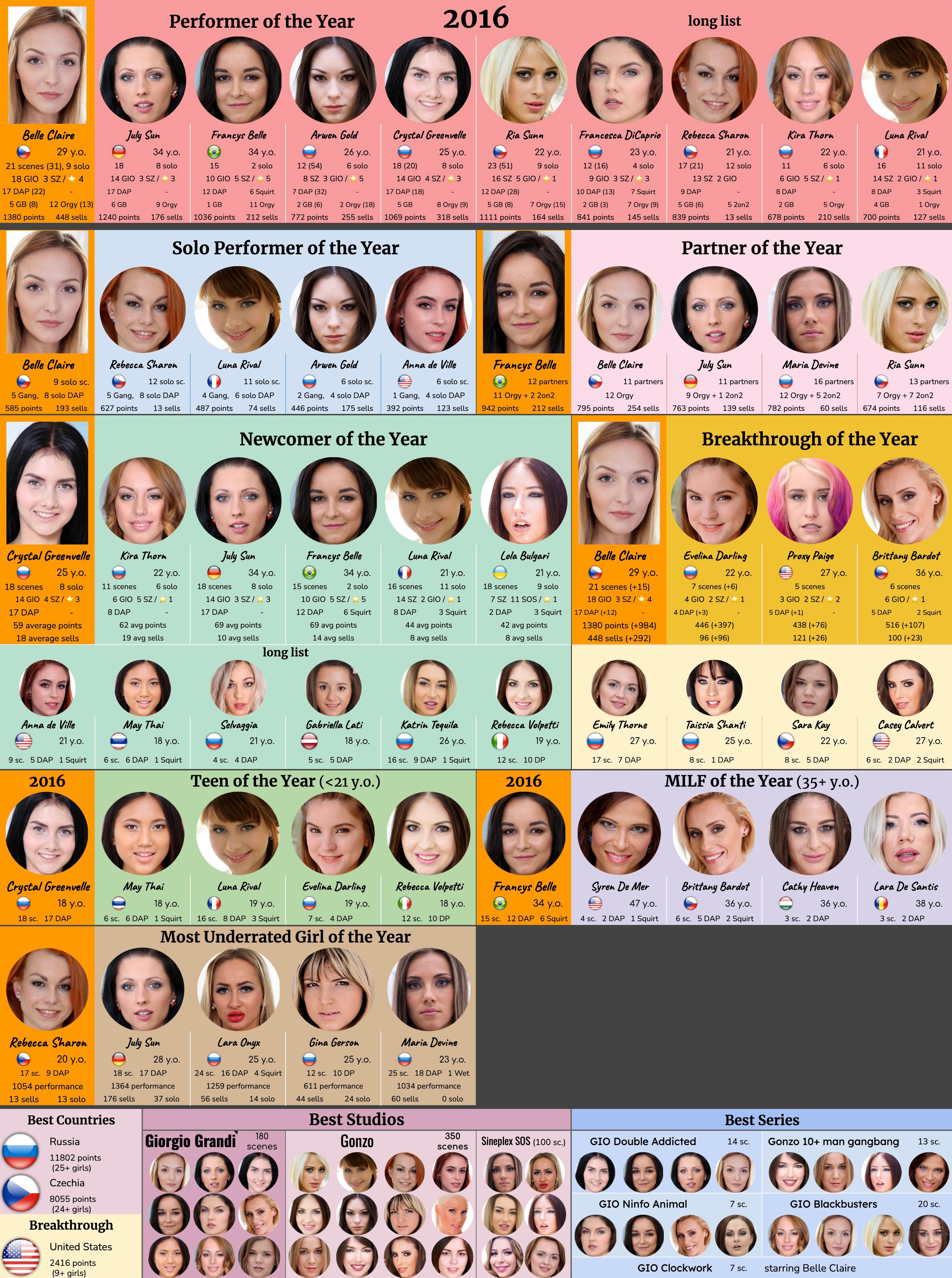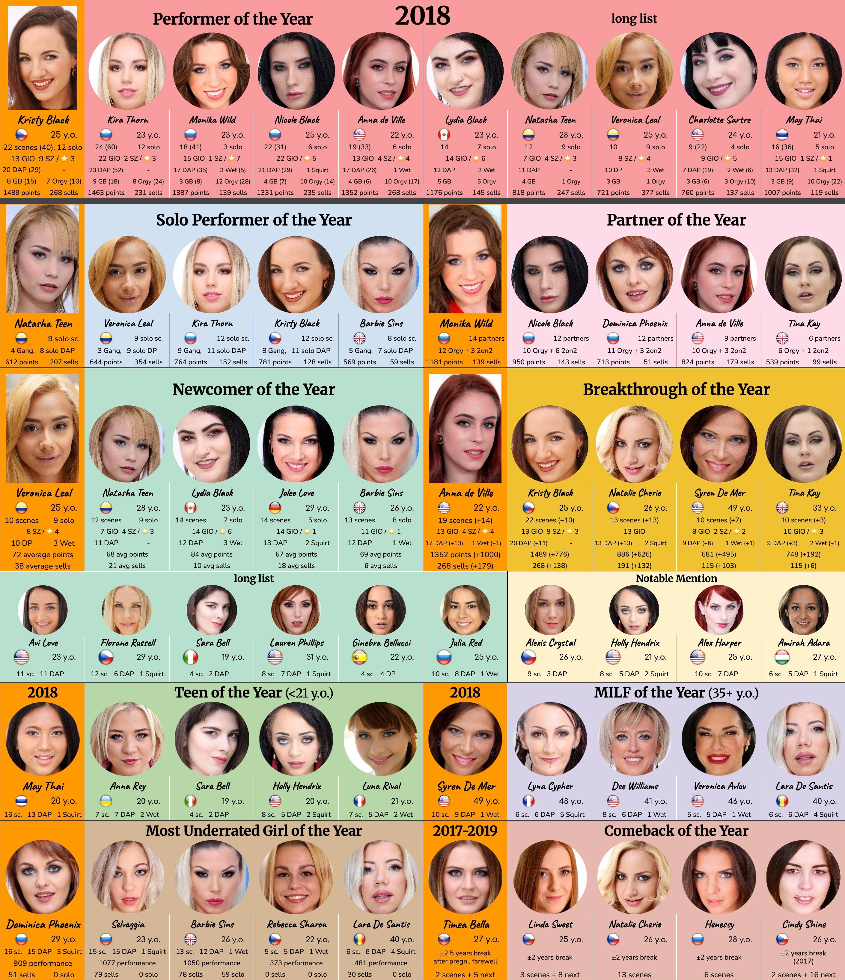 Next I will publish detailed review of each year from 2013 till 2024: best performers, newcomers, breaktrough, MILFs & teens, underrated performers, best performers in different genres, best scenes, etc.
