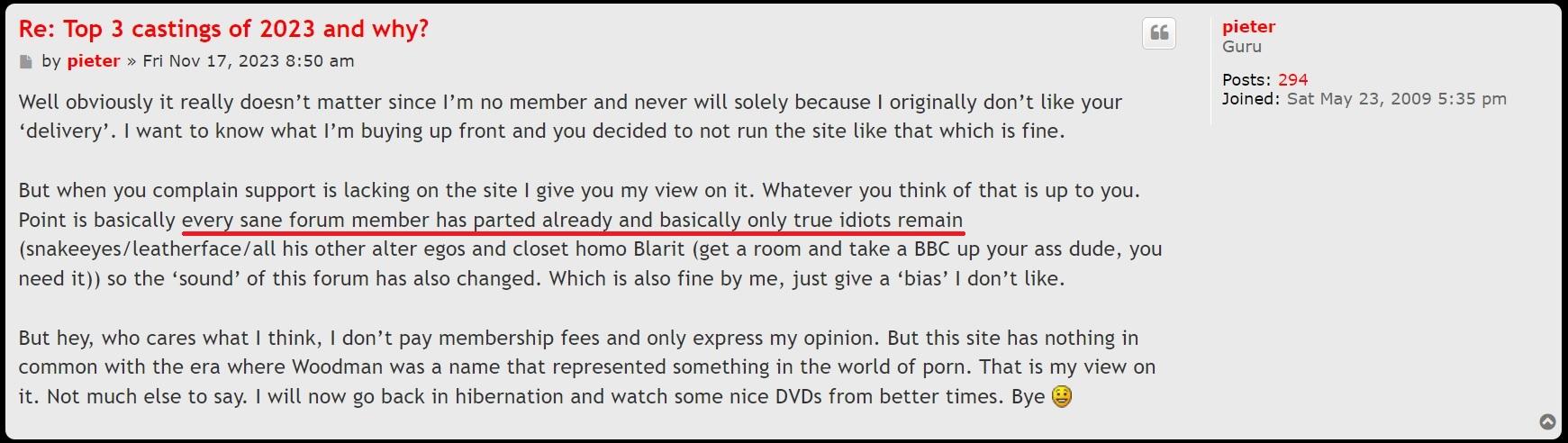 "Pieter," writes that he agrees with everyone else that Woodman's site is now complete garbage and then says "Times have changed and that's fine". WTF?