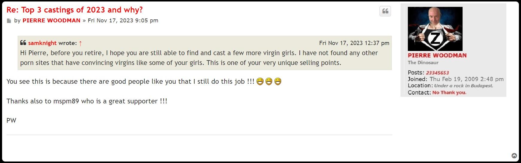 Re: Pierre Woodman: "I am a bastard and break the will of girls"
