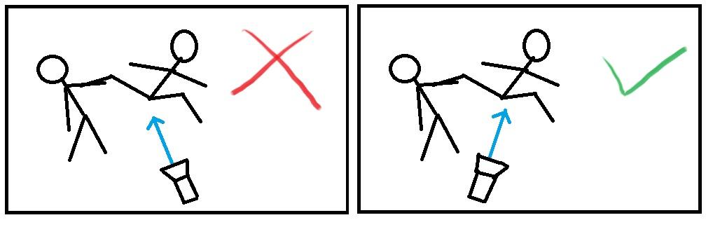 1. The camera stays too often on the side in respect to the action, must be moved more in the center.
