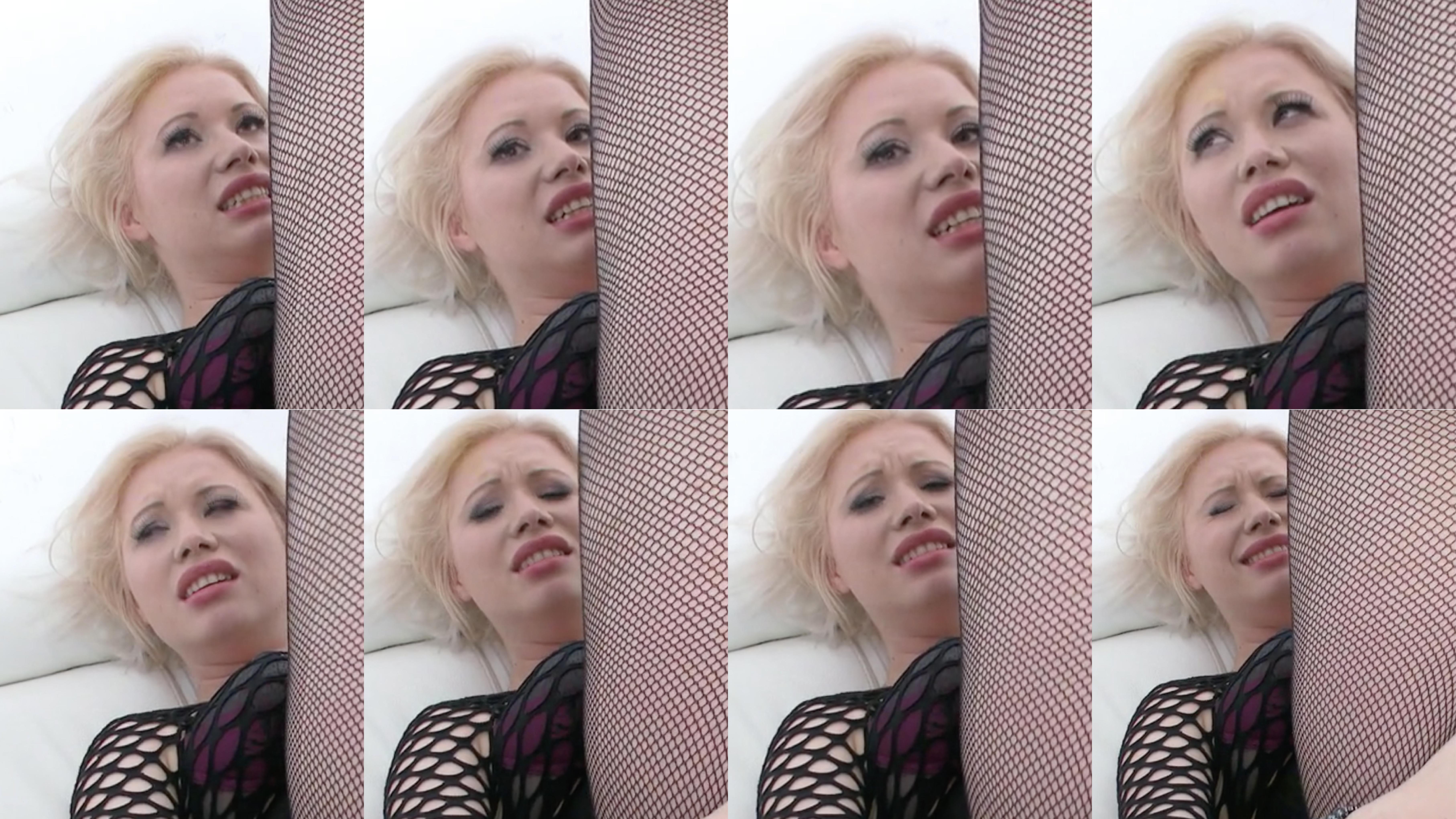 Victoria wet around the 7 minute mark when Dylan shoves the dildo up her ass. Whines and whinces and her eyes open up.