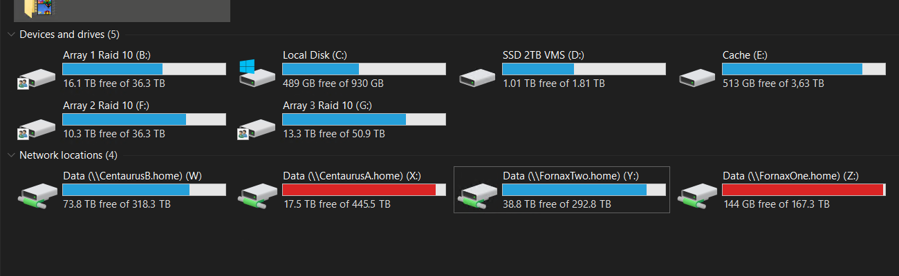 However in my basement I have several "home" servers, on which I have stored all my data. They total to about 1.35PB of which almost 1.2 PB are in use.