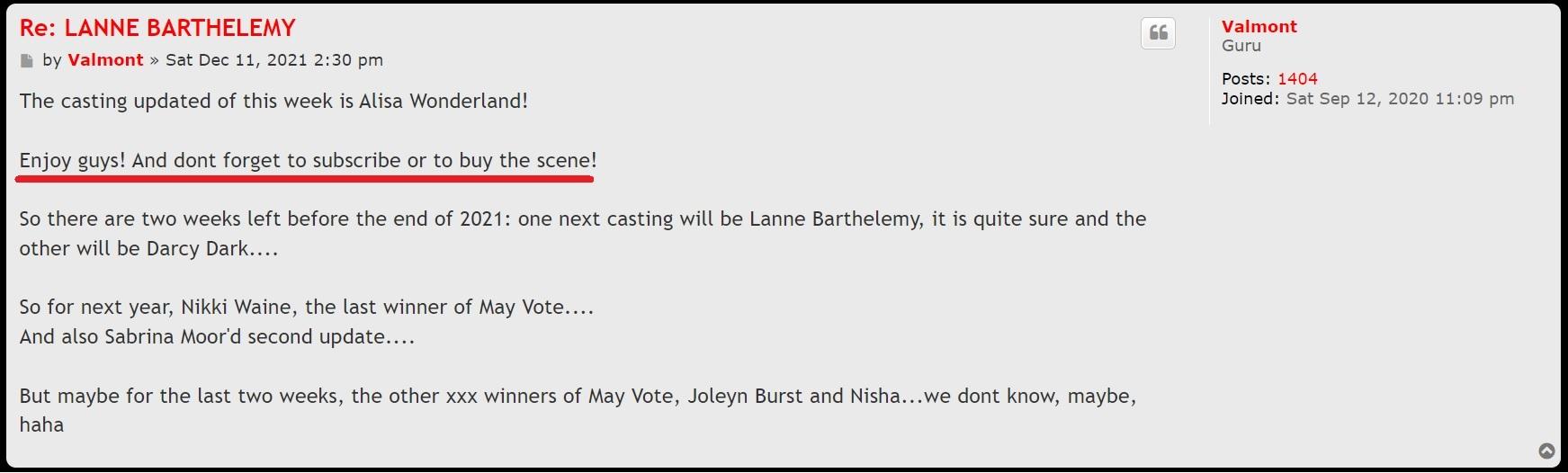And then what the fuck does that mean without ASKING for money? If Alisia Wonderland sent her there (AW has never been an ''adult model''...btw...) obviously she will have already explained everything. She didn't ask for money (let's believe that) but for sure she EXPECTED to make money. LOL What the differences?