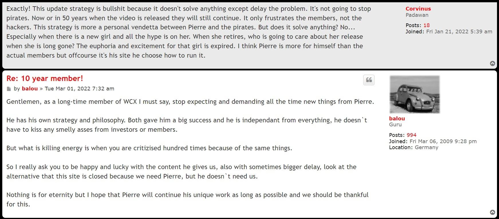 Aside from the hydra word use, think a bit with your brain, why the fuck would a regular legit member be so procupied with the SUCCESS of the "hydra's" (= a many-headed serpent or monster in Greek mythology that was slain by Hercules and each head of which when cut off was replaced by two others = LP/PB according to how pierre andre nicolas gerbier aka pierre woodman aka jean excusively refers them aside from the moniker "circus"). The troll account of this lobotomized fool jean never reviews the scenes on piere andre nicolas gerbier's site, it's only there to help the main account. This is not how a normal paying customer interested in porn behaves. Remember that.