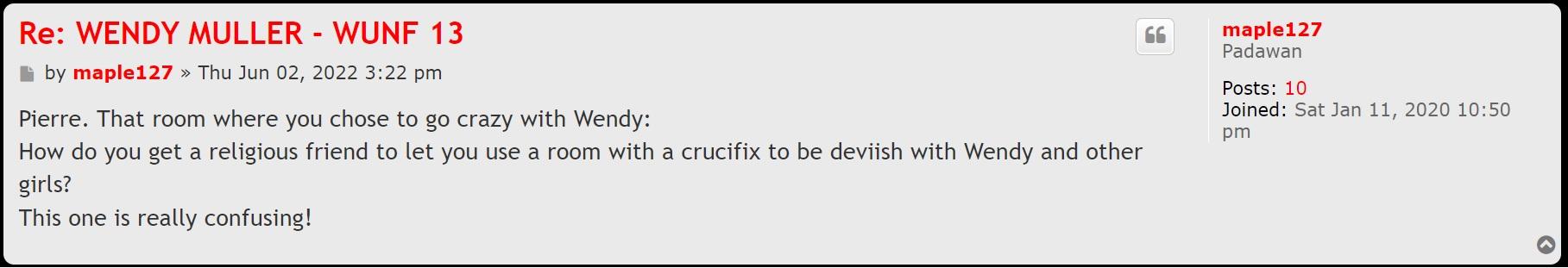 If you have something to say about this, welcome, otherwise there is little point in continuing to talk about Wendy Muller and the past.
