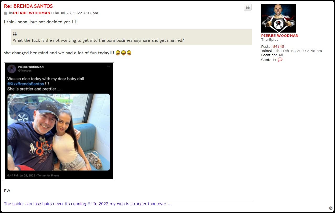Aside from the postdating and antedating (autocorrect messed it up with antidating), I found out why pierre andre nicolas gerrbier's (pierre woodman's) muse BRENDA SANTOS has a botched career for being such a small blue eyed girly......
