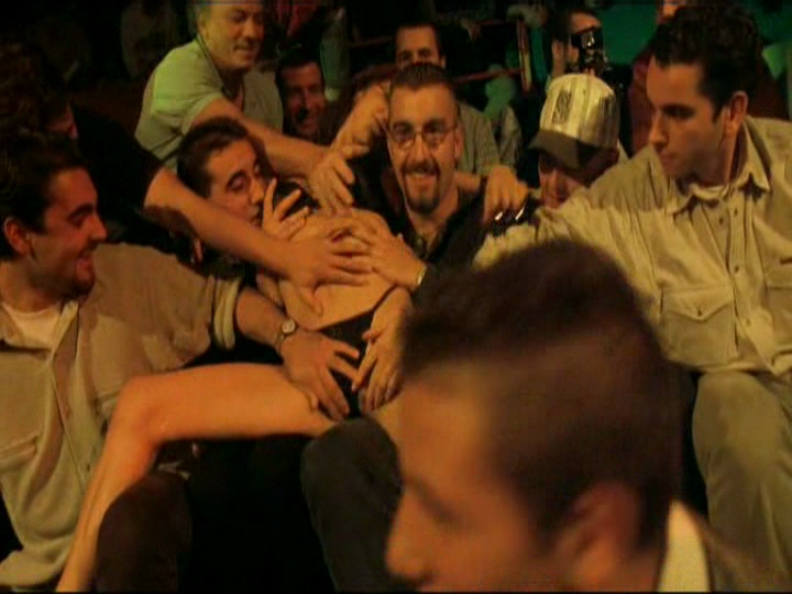 The strip scene was filmed at an actual live show for the adult entertainment business. Actual porn stars got the crown into it before she went out on stage. She really gets into it stuffing a scarf up her pussy and an audience member pulls it out with his teeth.