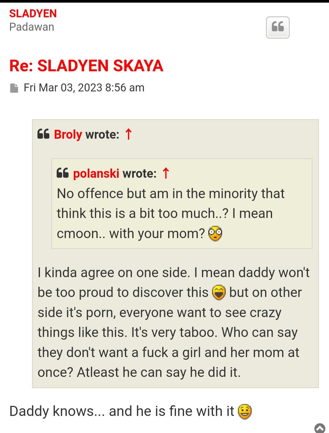 This Sladyen girl would probably suck her dad off too if it came to it. :D :D :D What a trashbag. Her daddy watch Woodman porn so why never take picture with daddy too???maybe because he aint around lololol Who knows maybe her daddy and her and her mom do incest at home.