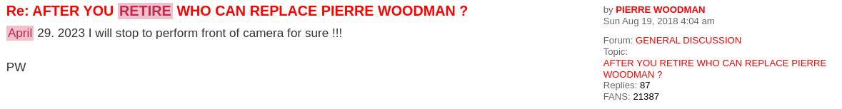 Re: Pierre Woodman: Retirement