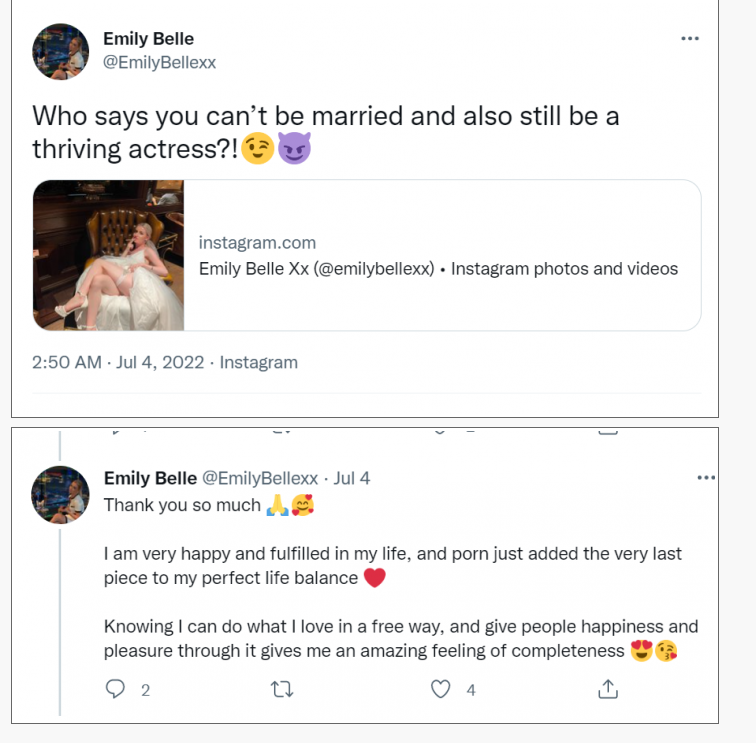 Jimbo8012395 wrote:Emily's husband was definitely in and around the porn scene. I distinctly recall that from Tw*tter. I think they met at a swinging/orgy party.