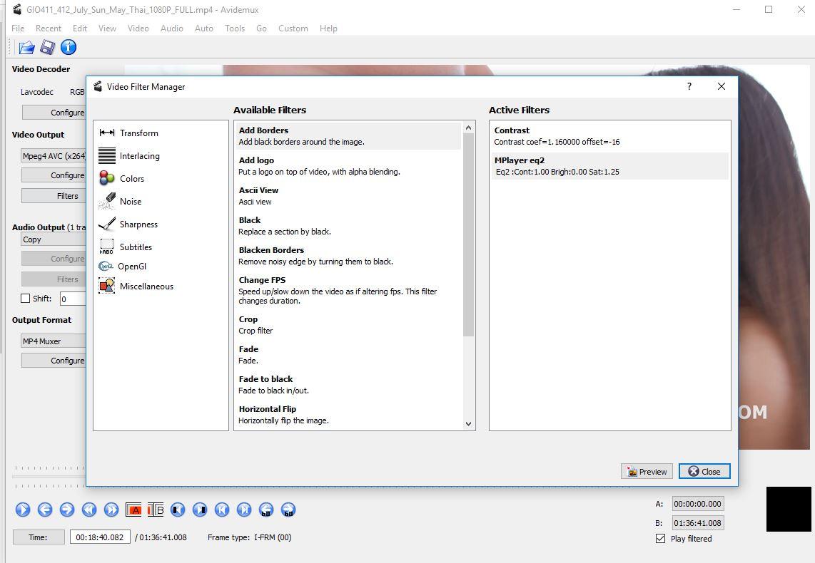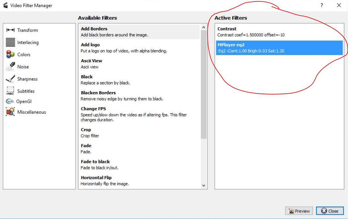 Avidemux 2.7 Filter Settings