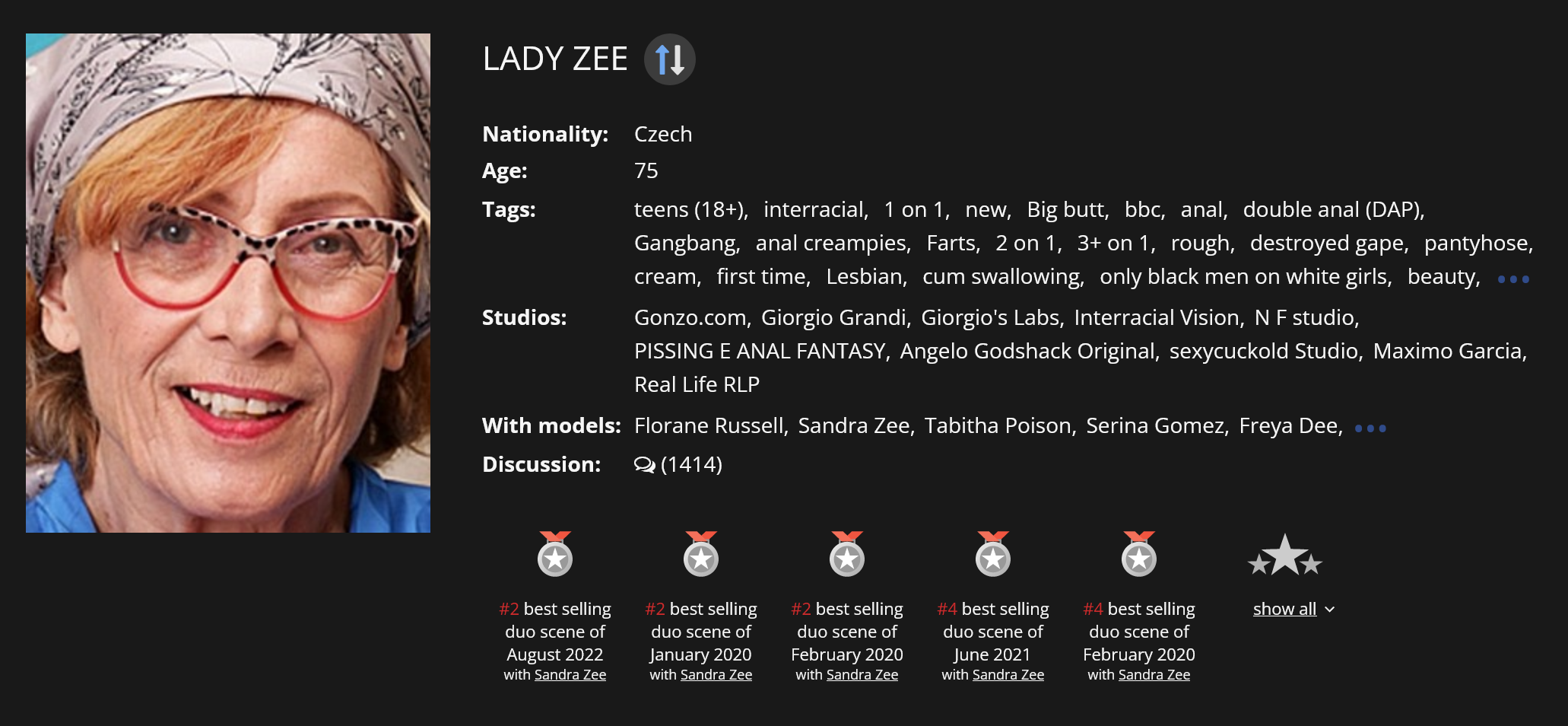 Lady Zee is only 23yo, but she retired because she felt porn doenst do her good socially and with her health - but not because of easily testable STD - and her BF ofc. The same sad old story!