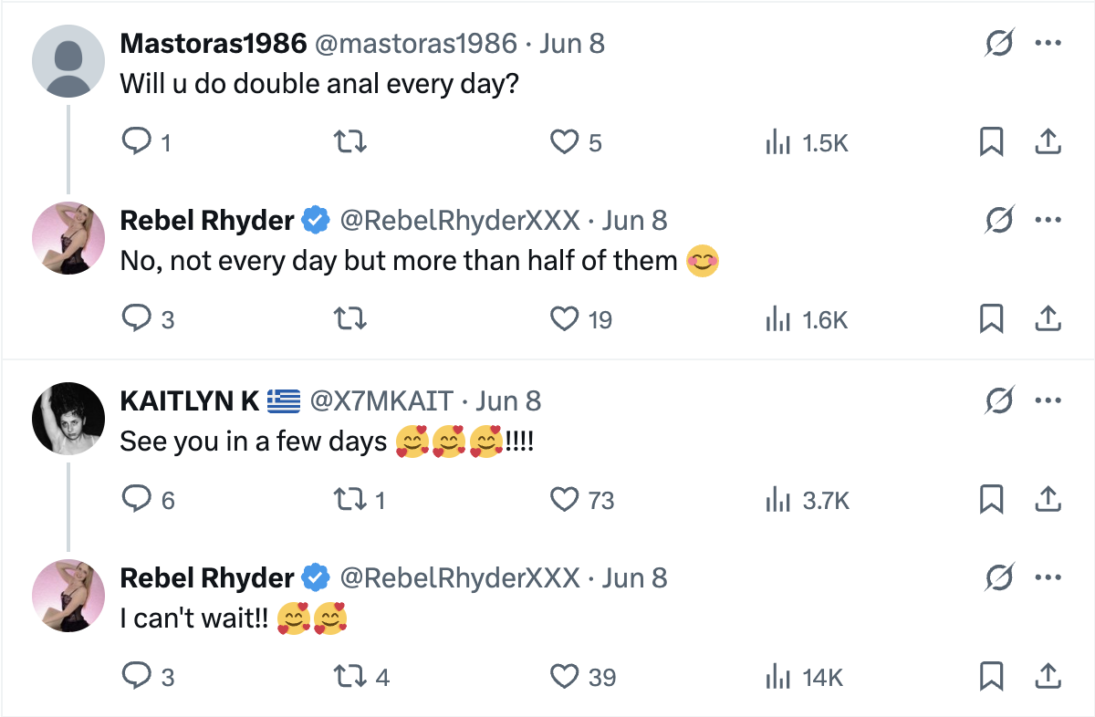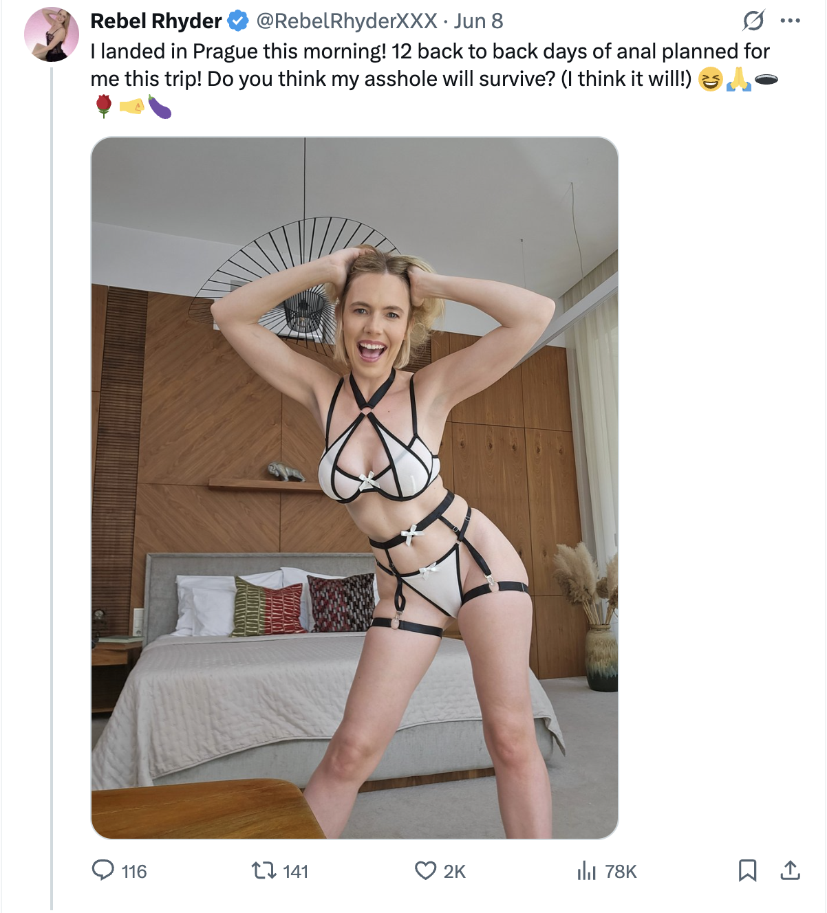Prague tour dates allow for 4 DAP shots each studio, but I can imagine that Andrew X. opts for a much cheaper dildo only scene and shoots only 3 DAP. AGO will take full advantage of her porn work tour, but she's also visiting his studio first and will be fresher still. However 7-8 DAP scenes are not a too big toll for Rebels ass anyway.![]()