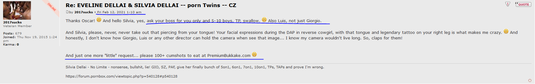 I replied last night on that tweet. Anyway, tonight "celebrating" 1000 days since Silvia had more than 4 cocks just for her at Gonzo studio and in the same time 1000 days from previous time she got TPed, TAPed there.