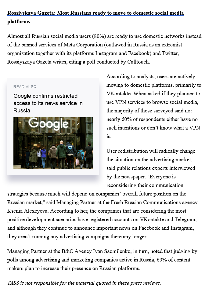For that reason, this clipping may be a fair reflection of the changing face of social media in Russia post-sanctions.