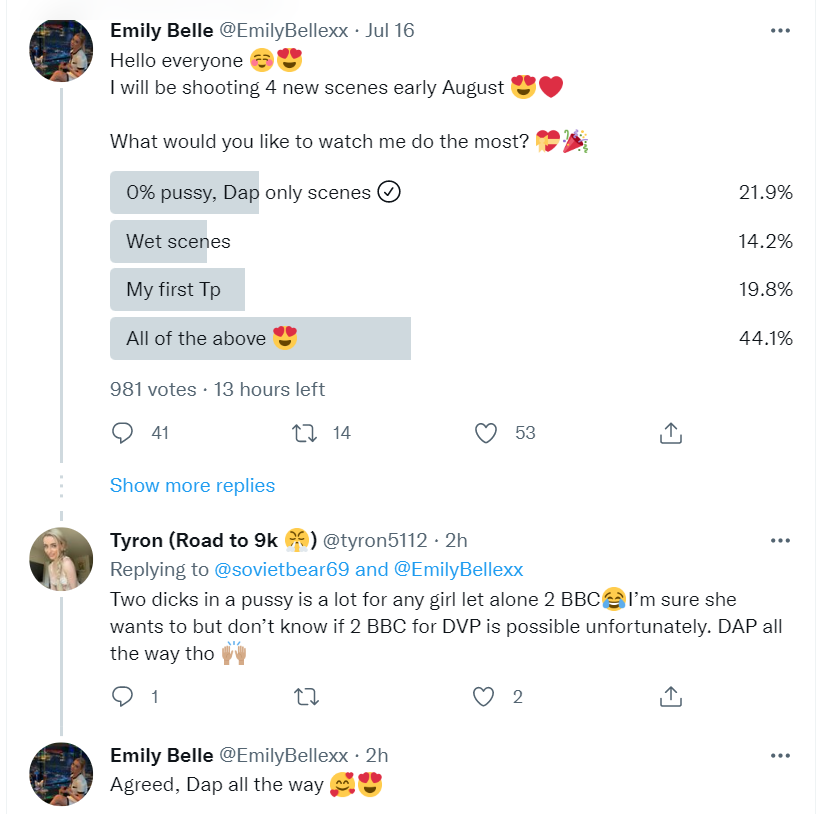 With the poll above.. looks like her ass will be used by other men while her pussy will be for her husband?