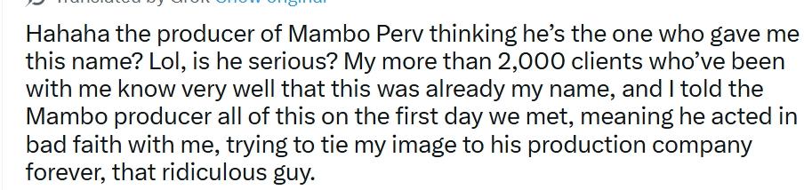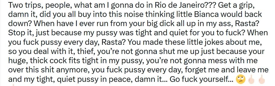 Posted this 1mt ago, so no news here for me. In social media since then she posted a lot of frustration posts about her new regular job, her long working hours, hunting at some family problems. Seems to be now she's blameing that on Mambo and Rasta. Sound pretty deranged to be honest, but I dont know the source of her frustration thus I leave it uncommented.