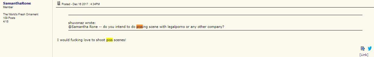 blownbyrone wrote:DukeBishop wrote:Hi Samantha, are you open to doing piss scenes for LP?