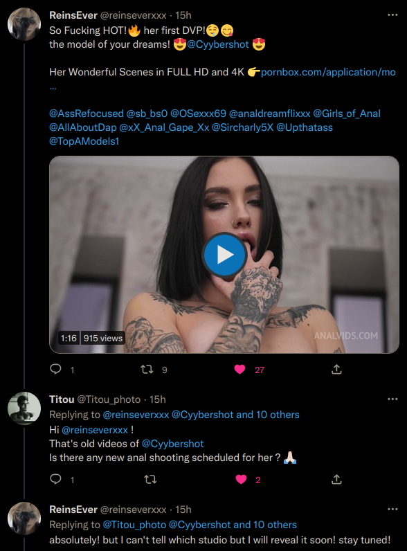 I just saw her agent @reinseverxxx reply to a question on twtr if Cyber would shoot anal again and he gave the following reply: