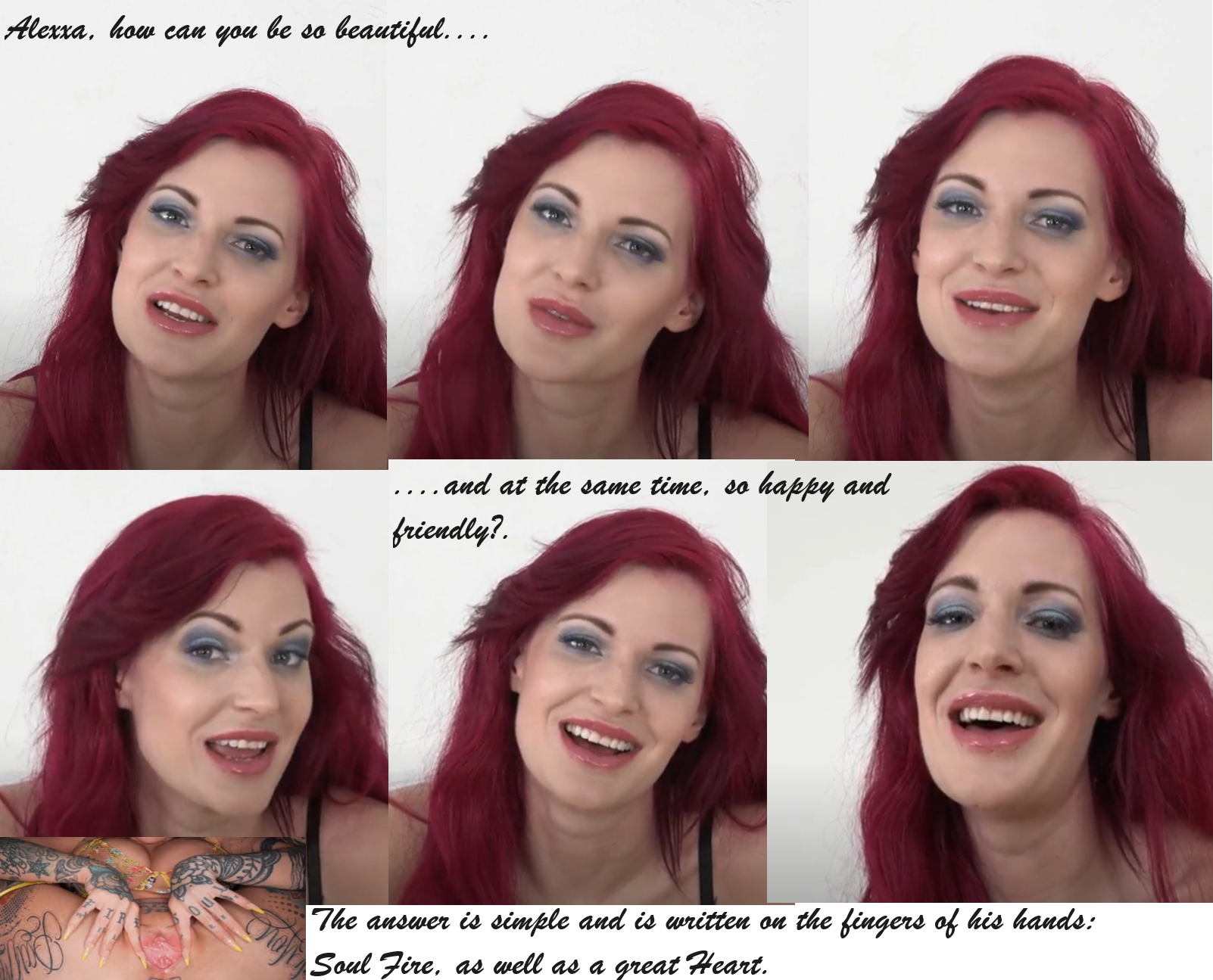 In addition to being a unique woman, she's a very brave and determined woman. You have to have courage to get tattoos on your legs: "Fuck you", "Pay me". Brave and with very clear ideas, she has focused her life on sex and fucking, and she isn't ashamed of it. Alexxa, I adore you.