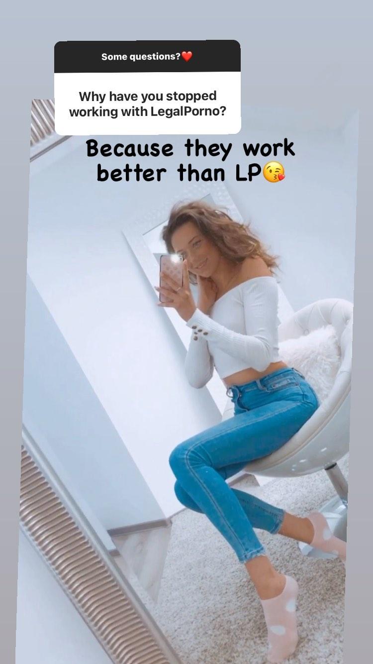And she didn't said something bad, and thats clear. If she will do again anal, or come back on LP it's another point (not the first one that say something and the the day after do the opposite), but not treat us like stupid. :D She said Legalporno at that clear question, not us.