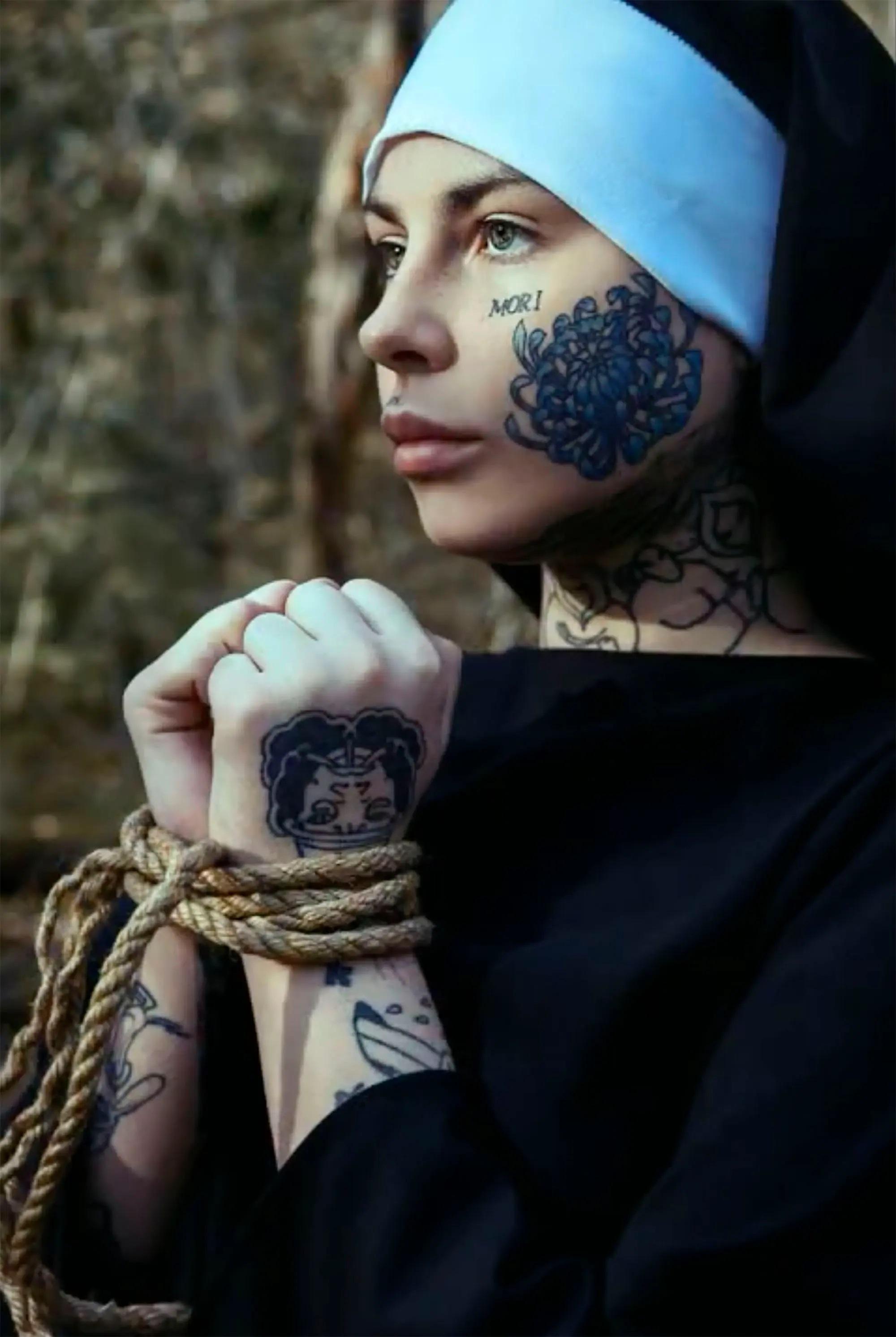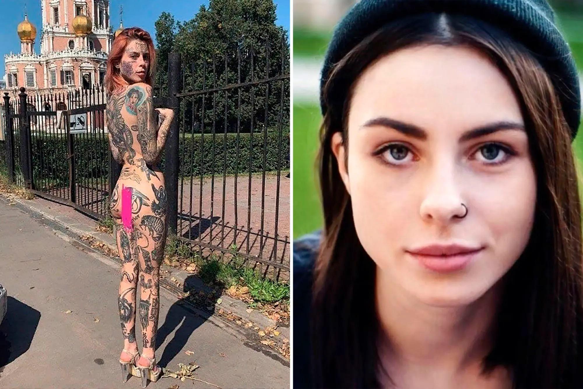 Polina, who’s tattooed from tip to toe, posed naked outside the Church of Intercession of the Blessed Virgin Mary in Moscow, local media reports say.