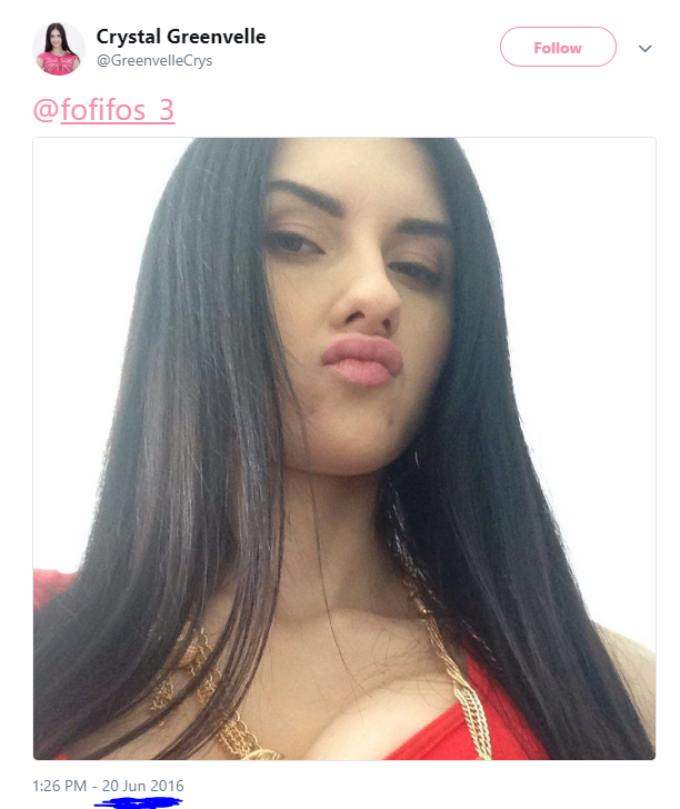 I used to follow her on [spam] on her then official account @crysgreenvelle where she got contact info and posted all her pics that are now around the internet, but far as january of this year that account either got hacked or sold since it now seems to be run by some generic porn bot. That @greenvellecrys was either run by some fan or someone else not her