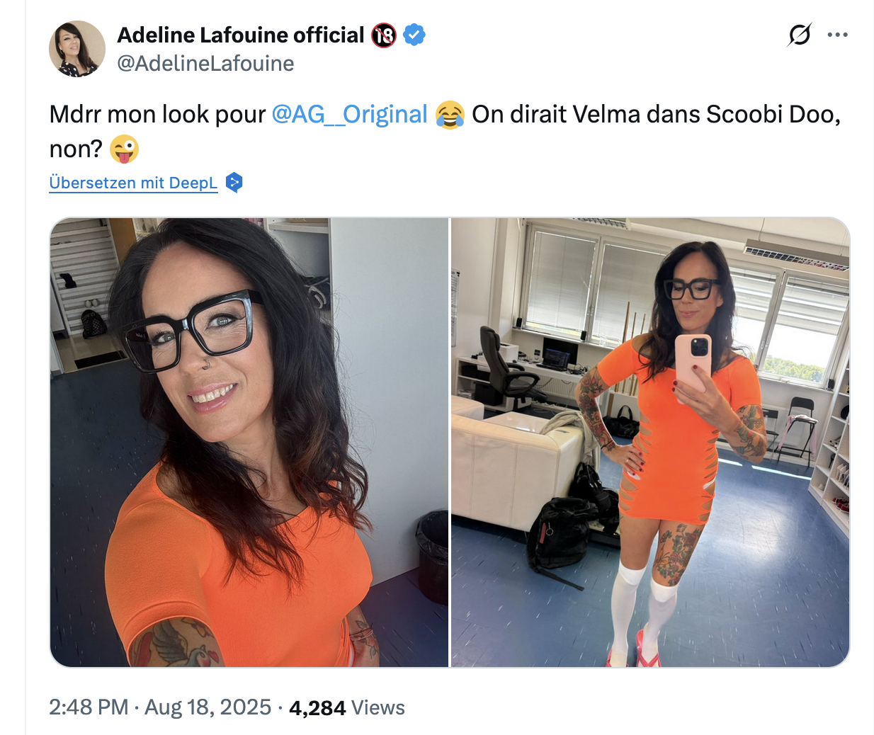 Thx for these gifs from Adeline's "All-in BBC GB" scene from 2023 (https://pornbox.com/application/watch-page/599353)... she looks super awesome in her black outfit, incl the overknees (and yes, I agree with you - better than with the white socks in her latest AGO scene (but AG's taste for the outfits of ladies performing in his scenes is disputable, anyway ;-)