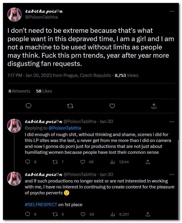 xxxVIPERxxx wrote: If she does not want to do extreme/hardcore rough porn anymore...that is okay, then we wish her well with other studios.