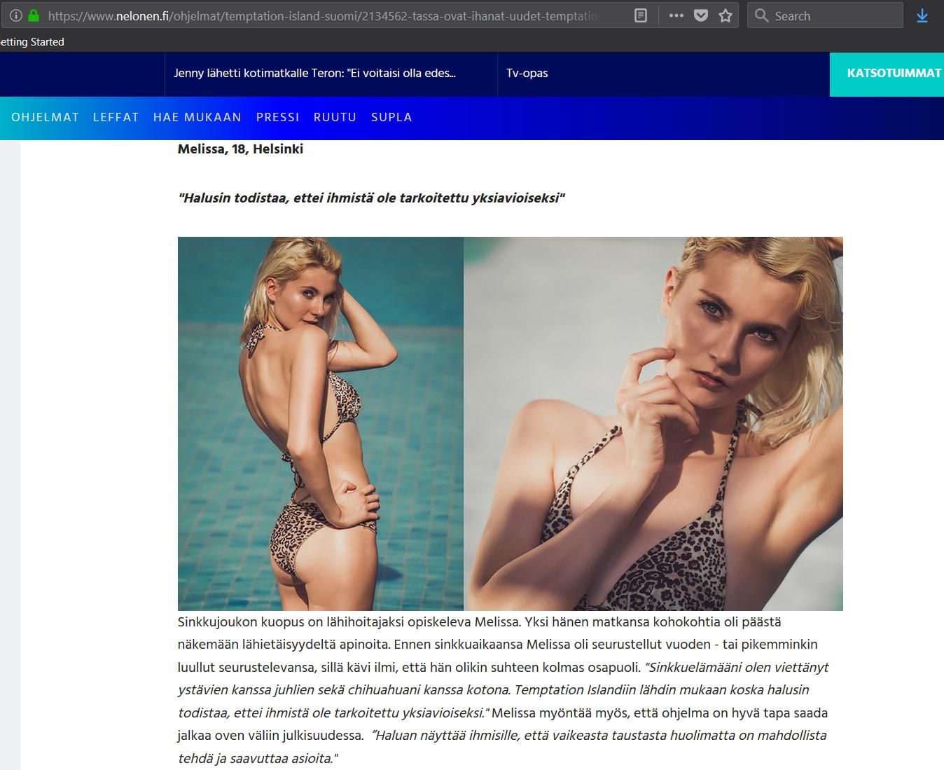 hjohjole wrote:Brand new very beautiful and submissive teen babe from Finland. Known as Miss Melissa in her first scene on Firsta anal quest.