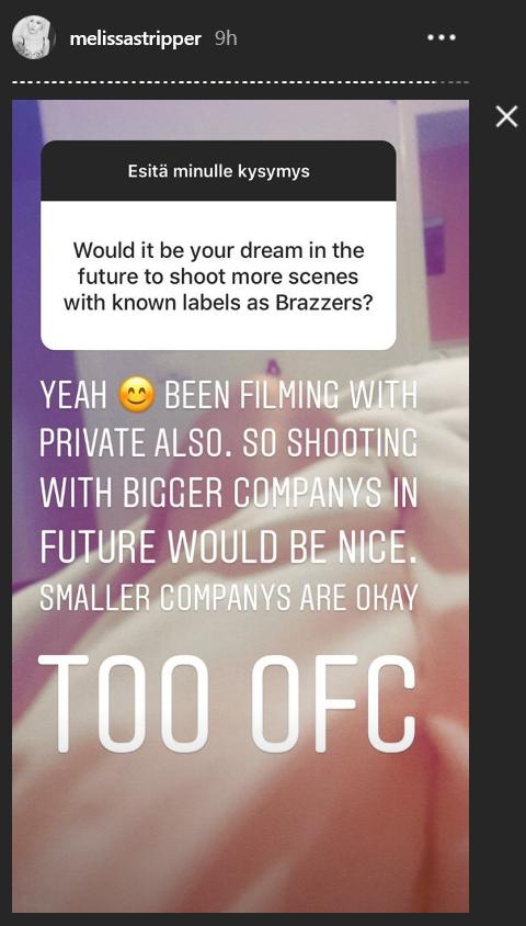 : http://www.missmelissa.fi Let's hope I'm wrong with her being a one day fly, and we'll talk again in a few years and conclude that she became a full blown porn star with dozens of scenes under her belt.