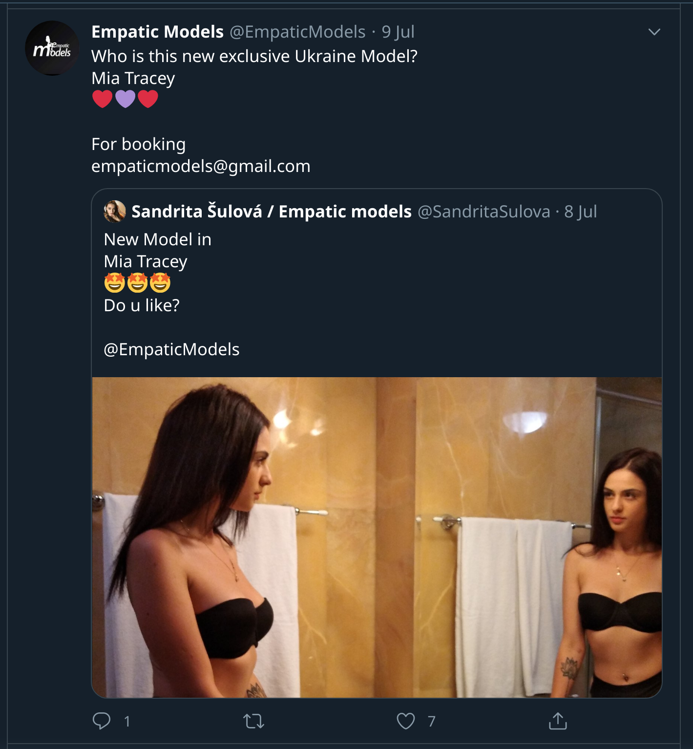 For agency she is Mia Tracey, for the frog is Mia Tresji (curiously the same name of the account that probably opened himself, and make believe she was her).