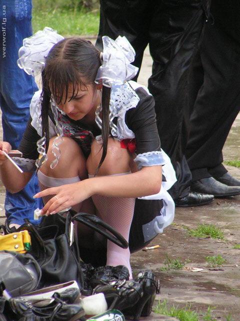 we also could see girls in uniform shoolgirls Ukrainian with knee-high white transparent nylon color, green, gray, purple, ect, so that we can see their feet through during anal scenes?