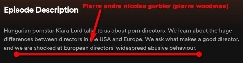 Note: she has lunch with gerbier, not because she is his friend, but for the job booking and accompanying MONEY!Thorughout the 1 hour podcast, NEVER Is woodman named as best dirctor, best producer, best production, top seller etc. LOL. Because it doesn't even cross their mind LOL. Pierre andre nicolas gerbier (aka pierre woodman) is simply a piece of sugar in 1000 liter of water in the porn business!