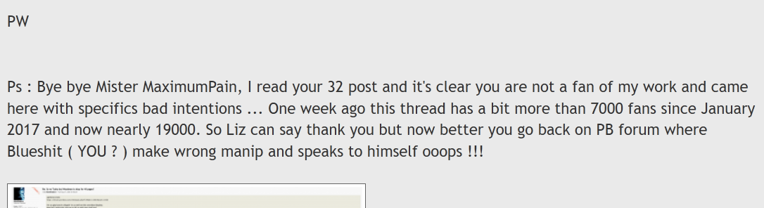 (as if he wanted to make believe that he had always behaved kindly on the forum with her, it is called ''victimhood'') When he was already saying not positive things about her a year ago.
